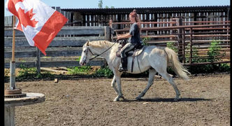 Mercury has that 'it' factor. His beautiful sabino colouring just pops, and his personality is sweet, easy going and gentle. Single footing horses usually have Standardbred blood crossed with Rockies, Walkers or even Paso's. Mercury comes from a program that used Rocky Mountain horses crossed with Rowdy Rawhide bloodlines to get that fast single footing gait, also known as speed racking. Mercury does not have any pace to his gait; he has a natural flat foot walk with a big over stride, a comfortable fox trot, and an easy to sit lope.